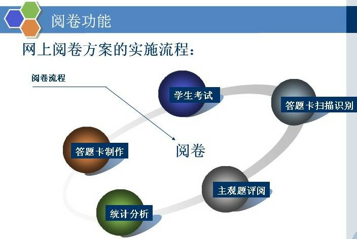 品科網上閱卷系統是品科公司在總結了多年以來教育行業服務經驗的基礎上,為實現紙筆考試的電子化管理,一次性解決所有考試管理事務(包括答題卡智能設計、試卷掃描、客觀題自動識別、主觀題網上閱卷以及自動生成考試成績報告),而開發的一套閱卷服務系統。這套系統集答題卡制作、報名信息錄入、標準答案及分數設置、答題卡錄入和自動判分、主觀題錄入和判分、試卷評判分組、錯判糾正機制、綜合分析、報表智能輸出等眾多強大功能于一體,不僅可以大大節省考試的人力、財力、物力成本,還可以保證閱卷的精確性和提高閱卷速度,甚至還支持家長和老師隨時查詢學生成績,能飛躍性促進考試管理信息化。